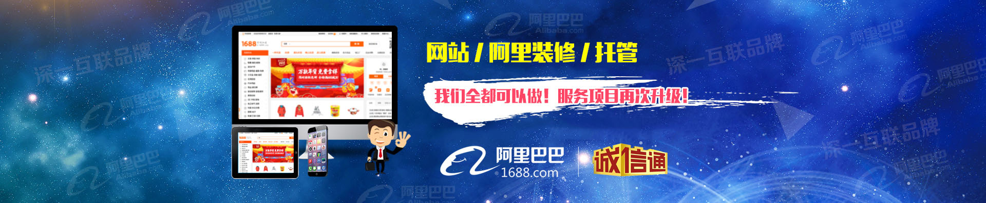 為更好的回饋和服務(wù)新老客戶(hù),深一增值業(yè)務(wù)----阿里裝修托管全新上線;即日起,網(wǎng)站+阿里裝修+店鋪托管,我們?nèi)伎梢宰隼?!?zhuān)業(yè)的事,交給專(zhuān)業(yè)的團(tuán)隊(duì),只需您一個(gè)電話400-666-2014 深一幫您全搞定!