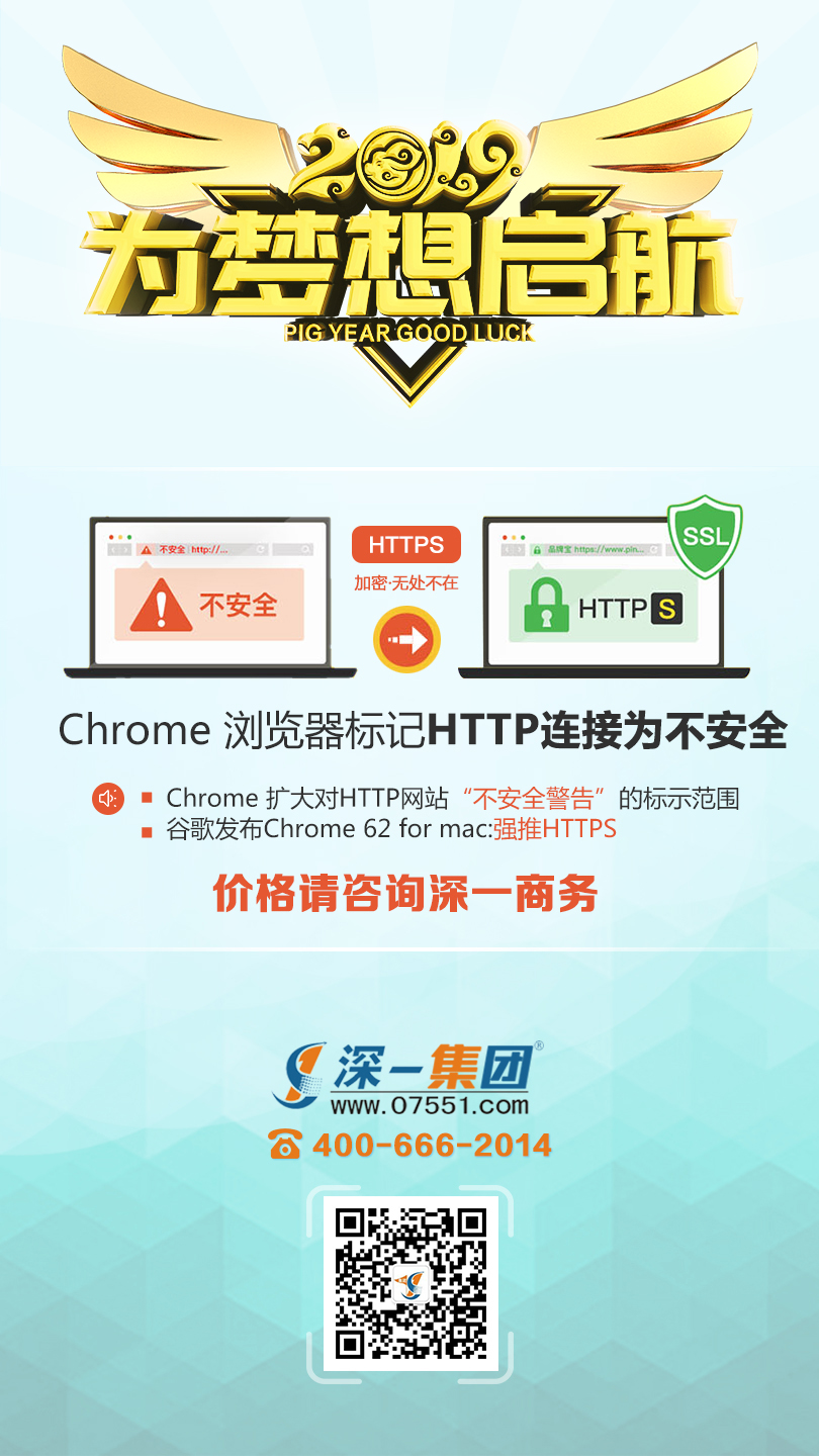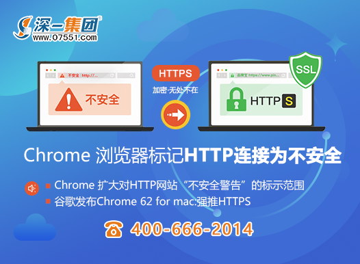 [深一SSL證書]HTTPS加密無(wú)處不在,谷歌Chronme瀏覽器2017年7月起標(biāo)記HTTP連接為不安全,SSL證書是您避不開的安全保障。詳細(xì)報(bào)價(jià)咨詢深一商務(wù)!
